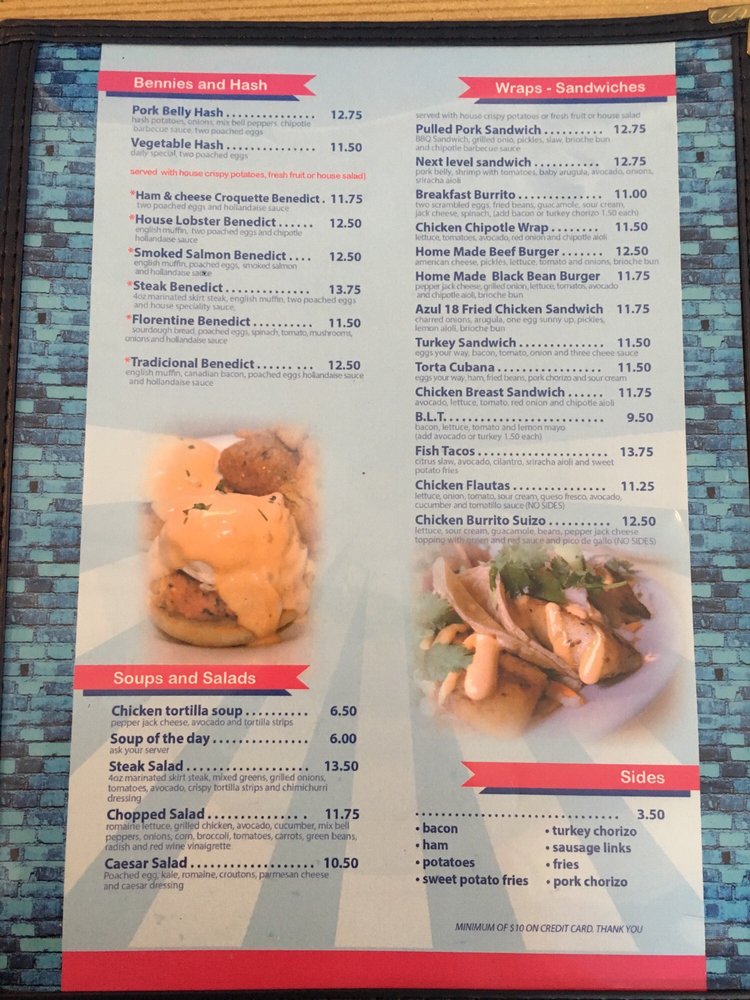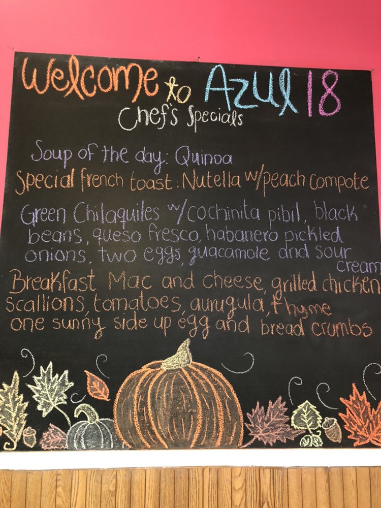 Azul 18, located in Chicago's Pilsen area, offers a diverse menu with options ranging from traditional to creative dishes. The restaurant provides a casual and cozy ambiance, perfect for a relaxing meal with friends or family. With offerings like Smores Nutella French Toast, Pilsen Chocolate Waffles, and Carrot Pancakes, Azul 18 caters to various taste preferences. Customers have praised the quality of the food, with standout items like the green chilaquiles and the flavorful Micheladas. The generous portions and attentive service contribute to a positive dining experience. Whether you're looking for a hearty brunch or a refreshing cocktail, Azul 18 delivers on both taste and atmosphere. If you're in the mood for a satisfying meal in a welcoming setting, Azul 18 is worth a visit.